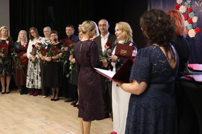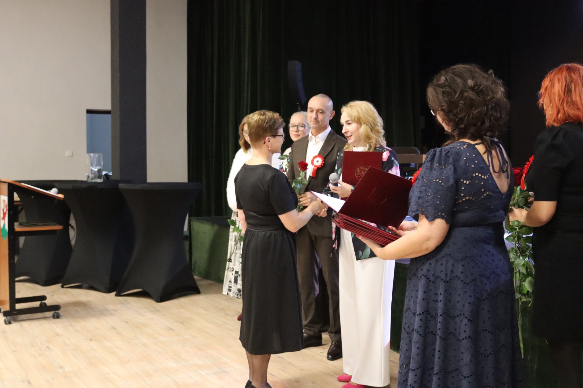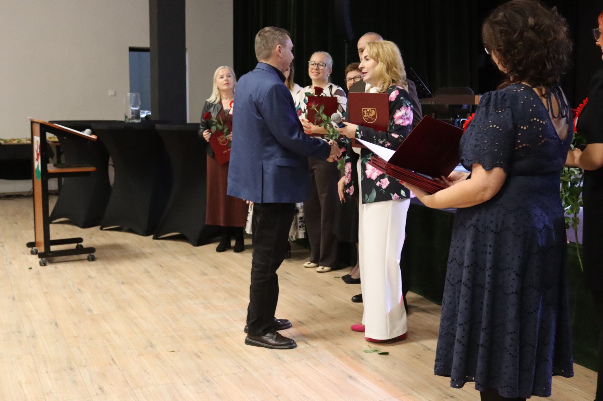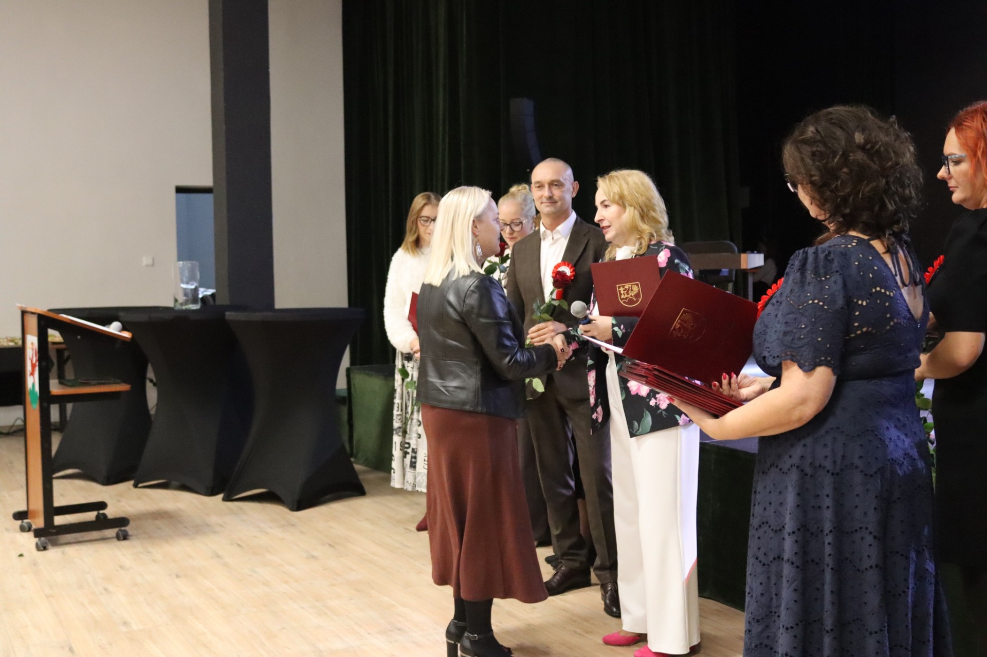 14 października 2025 roku w Okoneckim Domu Kultury odbyła się wyjątkowa uroczystość z okazji Dnia Edukacji Narodowej. To szczególny dzień, w którym doceniono trud, pasję i codzienne zaangażowanie nauczycieli oraz pracowników oświaty ze szkół wchodzących w skład Gminy Okonek — Szkoły Podstawowej w Okonku, w Lotyniu oraz w Pniewie. Podczas uroczystości Burmistrz Miasta i Gminy Okonek, pan Sebastian Korzeniowski, wraz z zastępcą Burmistrza, panią Anną Ziarnek, panem Henrykiem Berczyńskim oraz panią Reanatą Zabrocką i Ewą Zielińską, wręczyli nagrody Burmistrza wyróżnionym nauczycielom i dyrektorom.