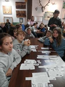 6 października 2025 r. uczniowie klas 4a i 5b odwiedzili Leśną Klasę w Nadleśnictwie Okonek, gdzie uczestniczyli w ciekawych warsztatach przyrodniczych.