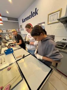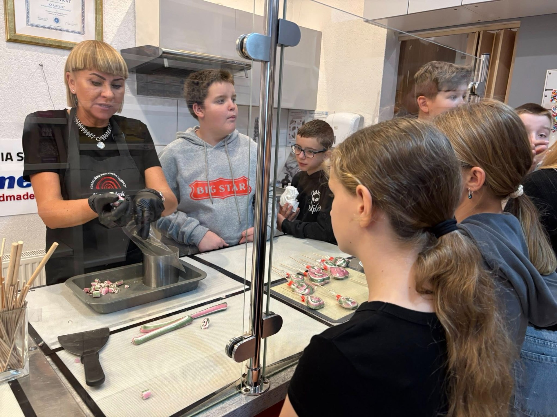 Z ogromnym zainteresowaniem obserwowali, z czego powstają lizaki i cukierki, a także dowiedzieli się, że barwniki używane w słodyczach mogą być naturalne i zdrowe
