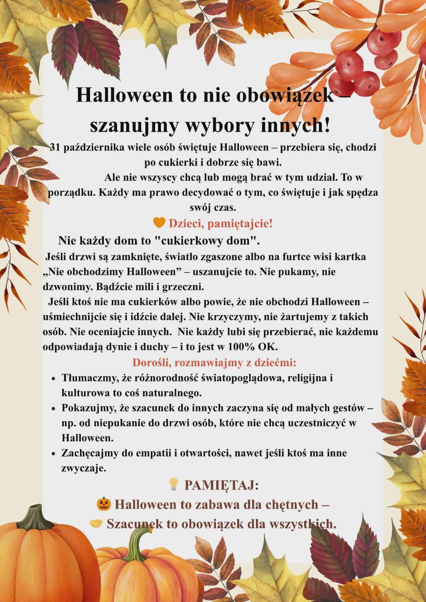 Zobacz również 19.11.2025 „Ojczyzna w słowie i w sercu” 14.11.2025 Informacja dotycząca dni: 17, 18, 19 listopada 14.11.2025 Informacja dotycząca "Pokazu mody leśnych zwierząt 14.11.2025 „Zwierzęta naszych lasów” Halloween Opublikowano: 23 października 2025 19:30 Kategoria: Aktualności Wydrukuj Wyświetleń: 34