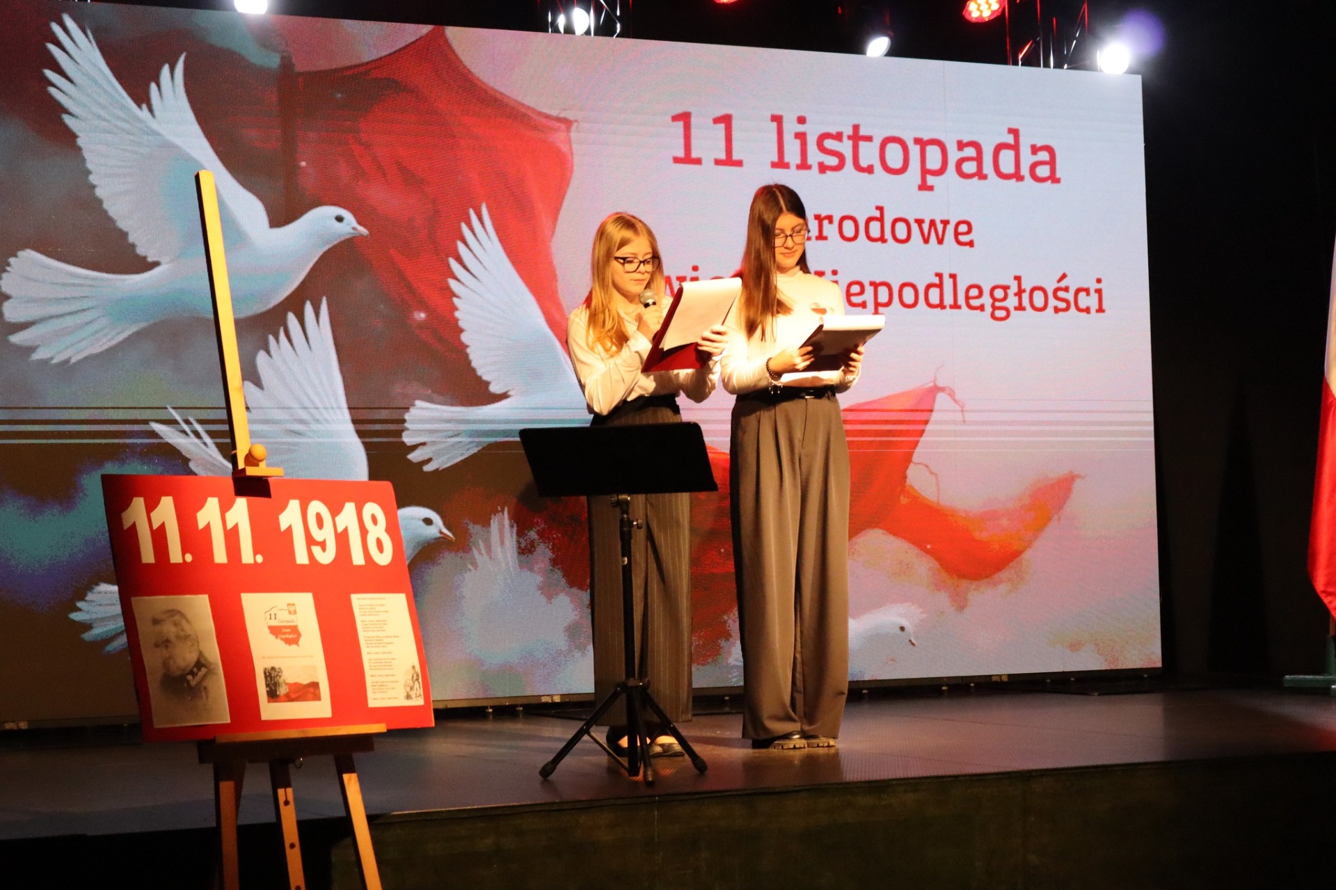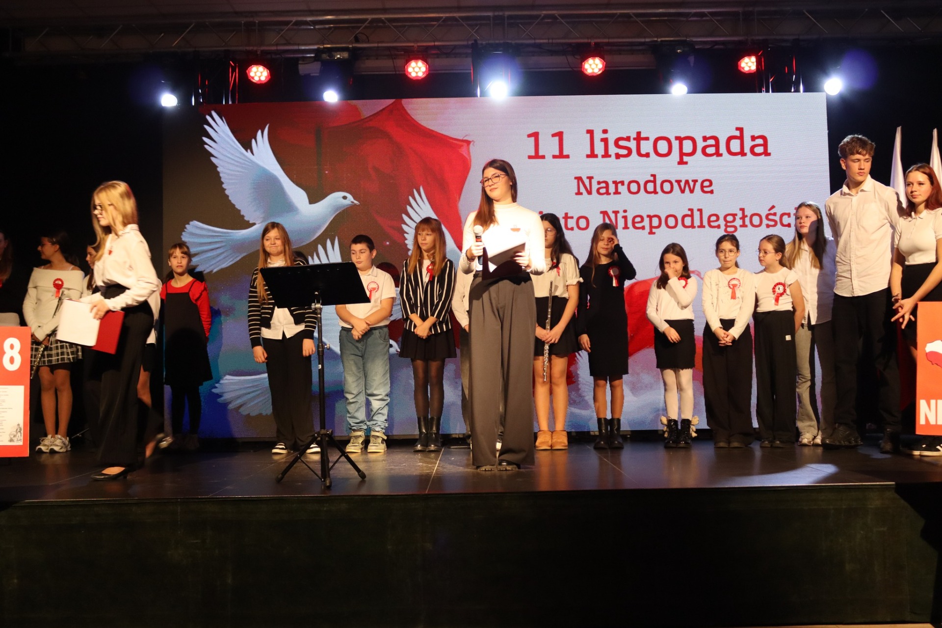 Uczniowie Szkoły Podstawowej w Okonku, ubrani w galowe stroje i ozdobieni biało-czerwonymi kotylionami, zaprezentowali poruszający montaż słowno-muzyczny przypominający najważniejsze wydarzenia z historii walki o wolność. Uroczystość miała podniosły i patriotyczny charakter, a jej nastrój sprzyjał refleksji nad znaczeniem niepodległości w życiu każdego Polaka.