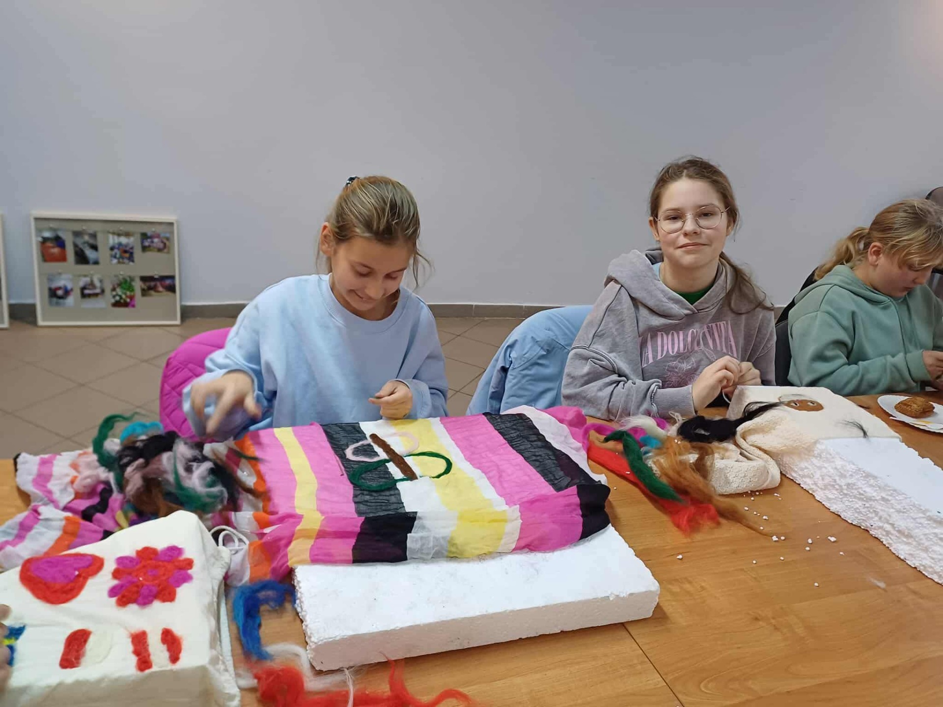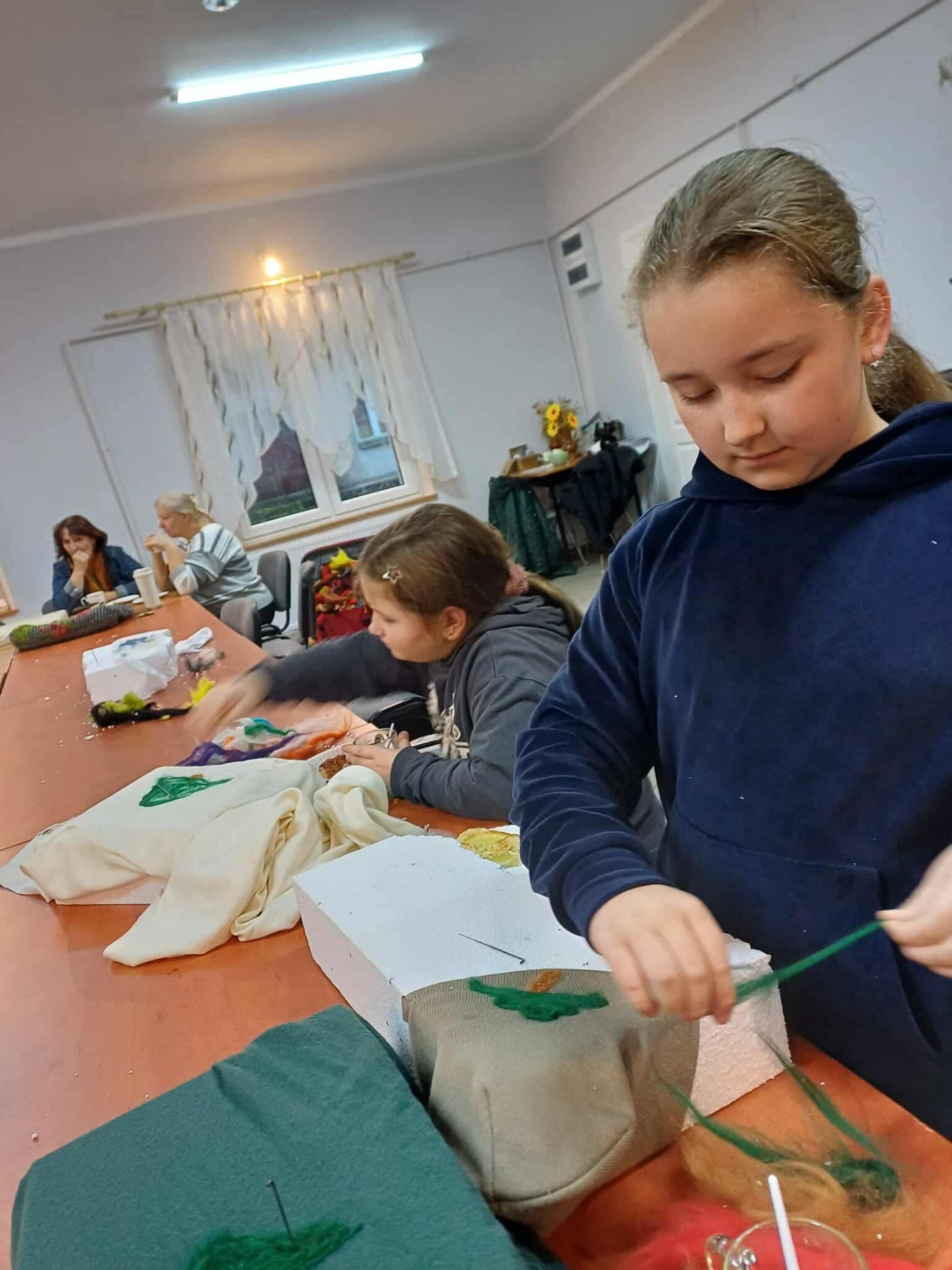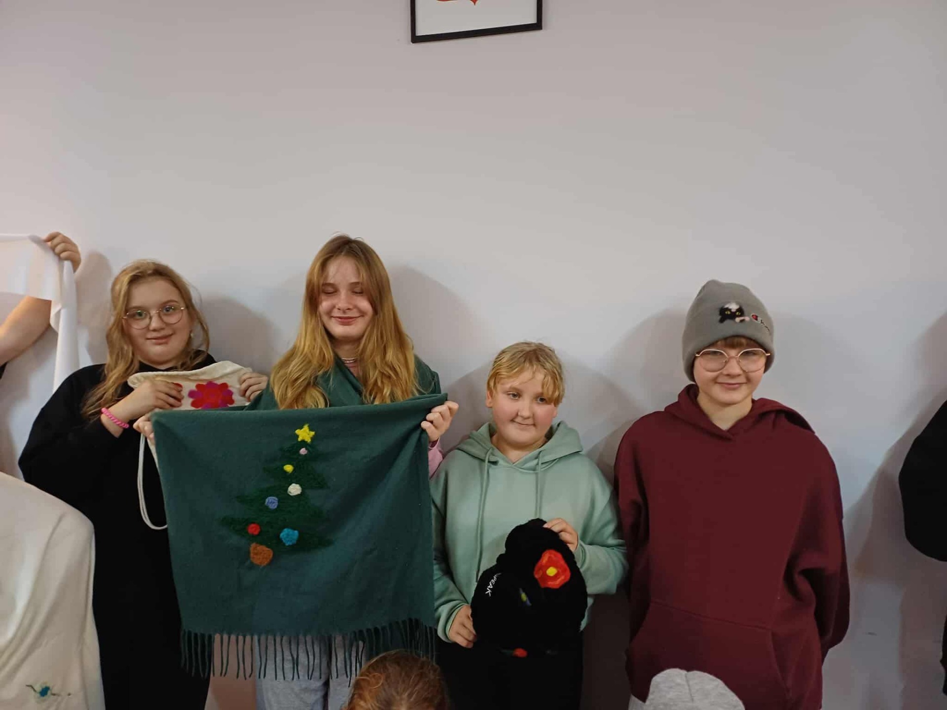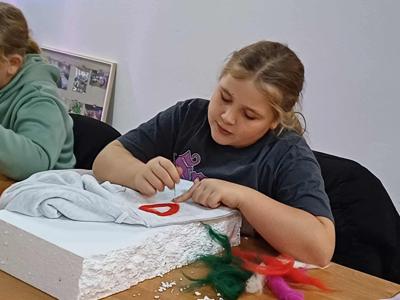 Pod czujnym i inspirującym okiem pani Iwony Zapart, która z profesjonalizmem i ciepłem poprowadziła warsztaty, młode artystki odkrywały tajniki filcowania. Ich zaangażowanie było przeogromne! Spod palców wychodziły wspaniałe, pełne detali prace – małe dzieła sztuki. Motywy zwierzęce, świąteczne i jesienne, ożyły na czapkach, szalach i torbach, stając się niepowtarzalnymi ozdobami. Każda praca emanowała pomysłowością i precyzją, udowadniając, jak wiele kreatywnej mocy drzemie w młodych ludziach.