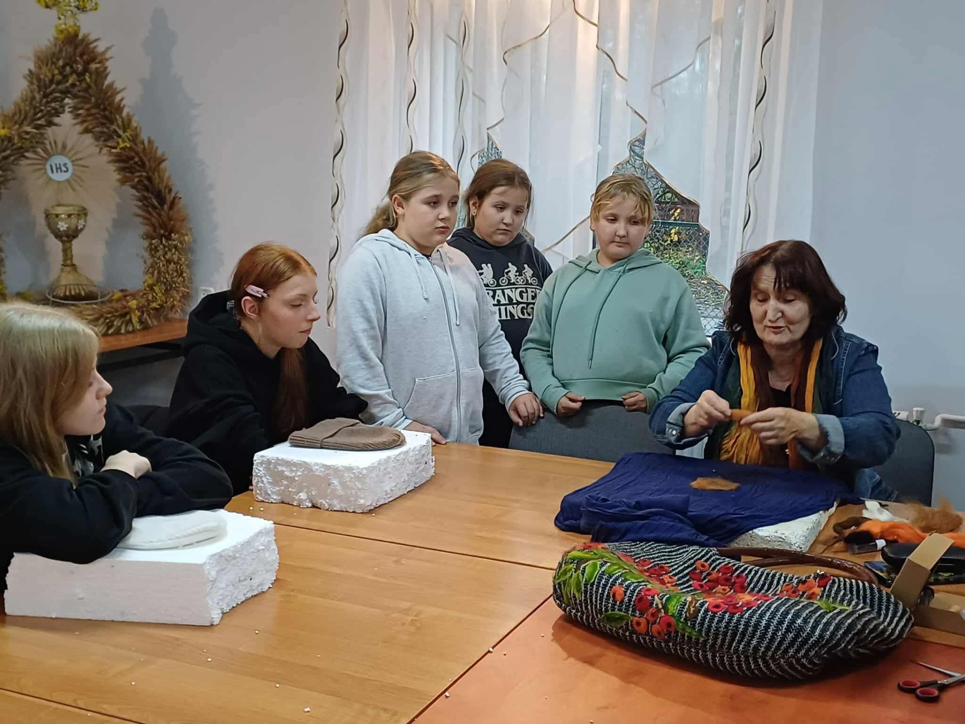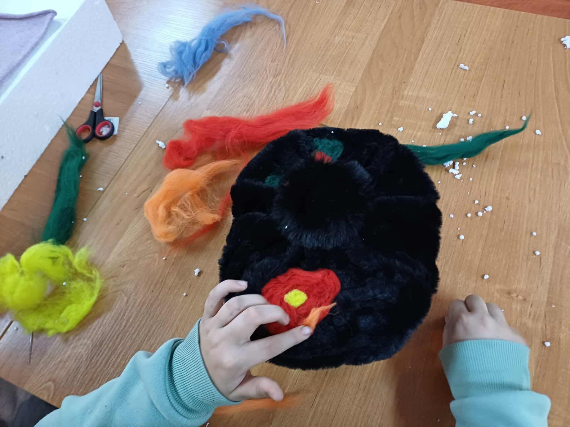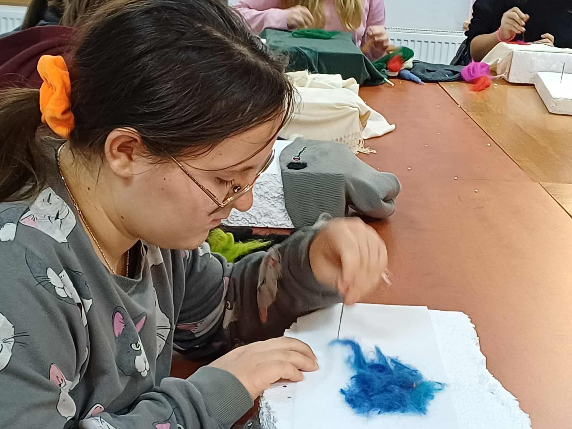 Pod czujnym i inspirującym okiem pani Iwony Zapart, która z profesjonalizmem i ciepłem poprowadziła warsztaty, młode artystki odkrywały tajniki filcowania. Ich zaangażowanie było przeogromne! Spod palców wychodziły wspaniałe, pełne detali prace – małe dzieła sztuki. Motywy zwierzęce, świąteczne i jesienne, ożyły na czapkach, szalach i torbach, stając się niepowtarzalnymi ozdobami. Każda praca emanowała pomysłowością i precyzją, udowadniając, jak wiele kreatywnej mocy drzemie w młodych ludziach.