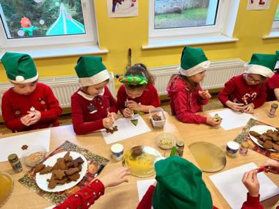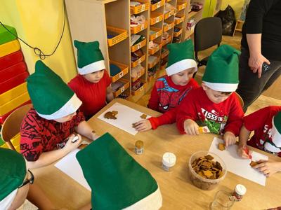 . W pracowni elfów, która to mieści się w Przedszkolu Miejskim, wraz z przedszkolami z Żabek, dekorowaliśmy pyszne pierniki