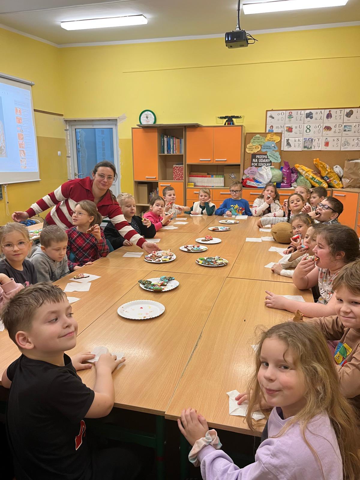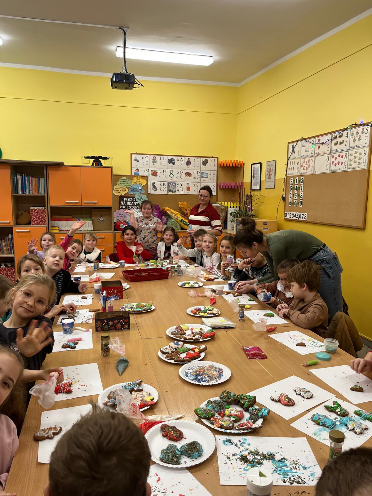 W piątek w klasie 1a od samego rana praca wre. Dekorujemy pierniki, które zostaną przeznaczone na sprzedaż w trakcie Jarmarku Świątecznego, a pieniążki przekazane potrzebującym, bezdomnym zwierzakom ![]()