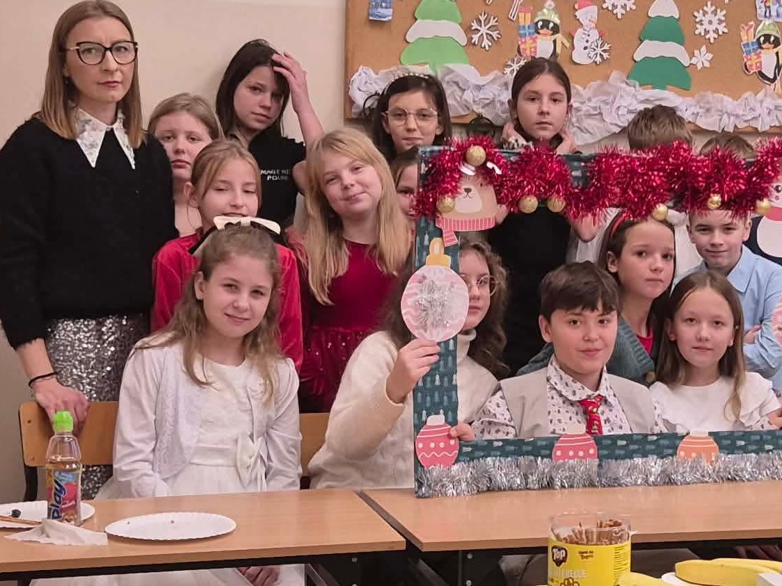 Świąteczny, muzyczny akcent od uczniów klasy 4a![]()