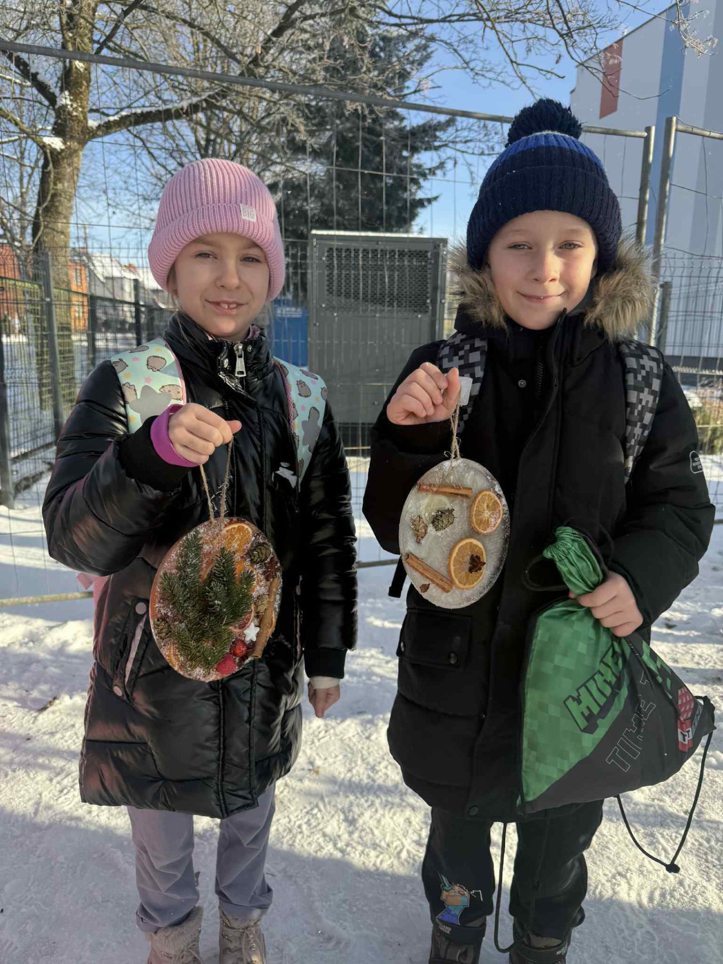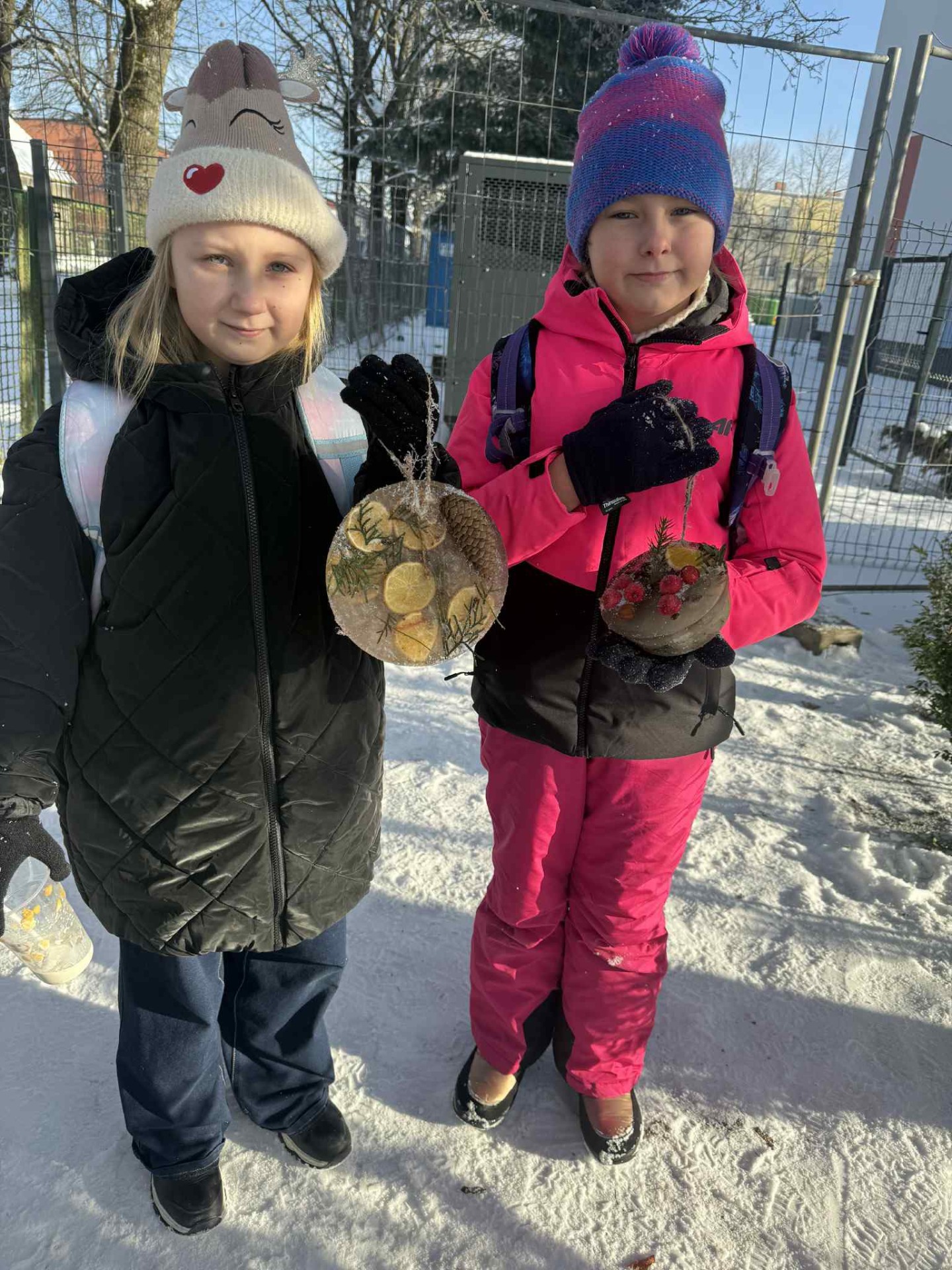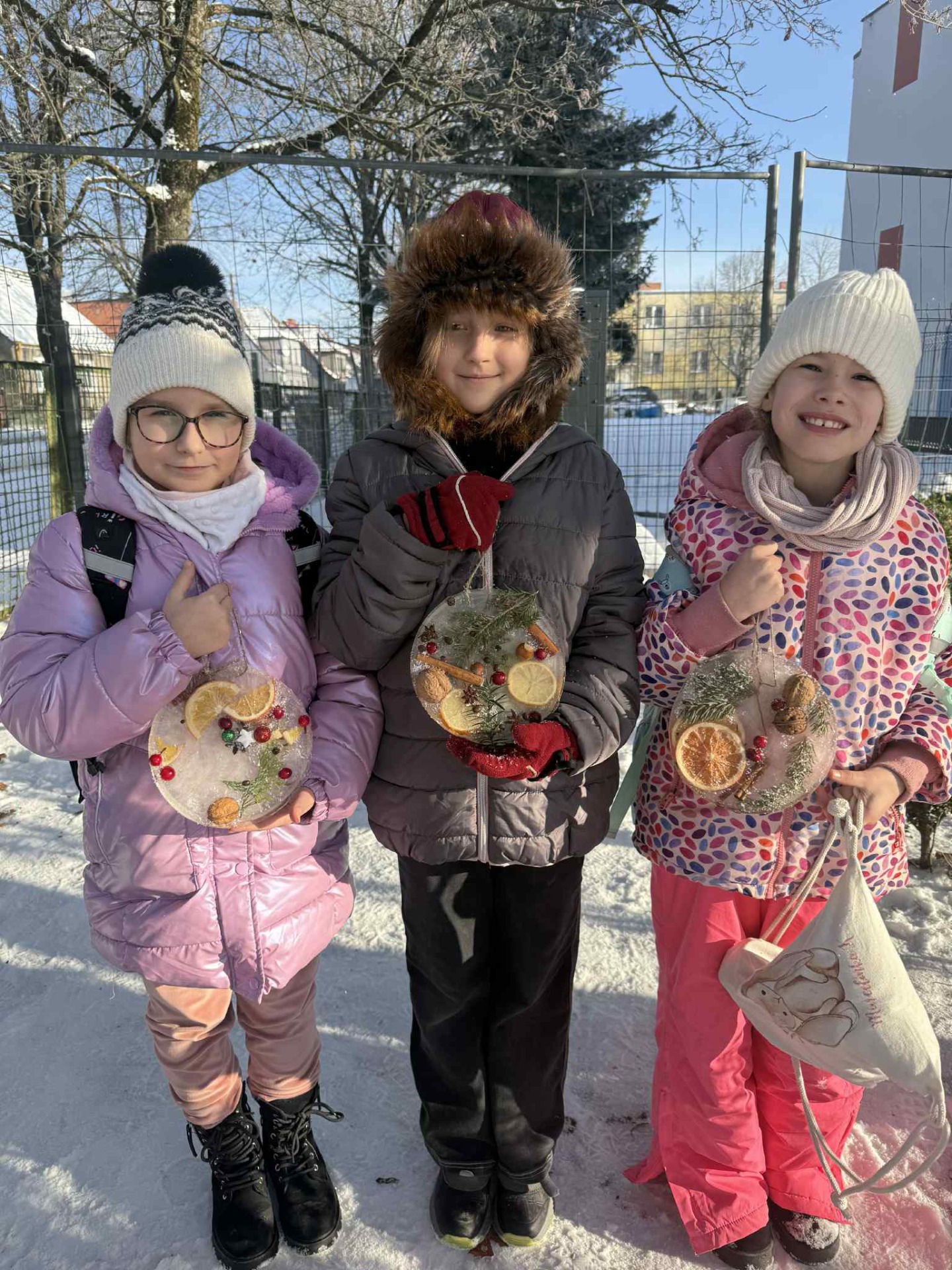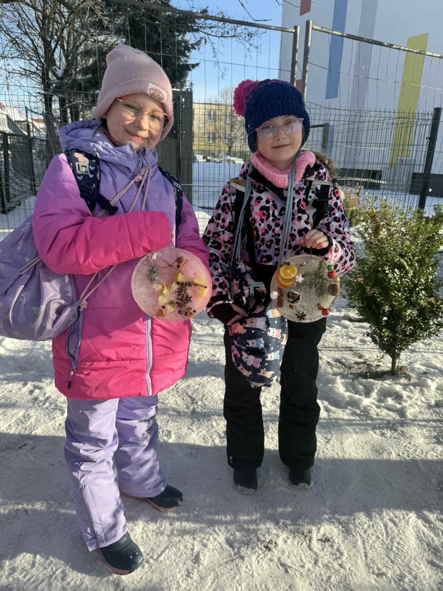 Korzystając z mroźnej pogody, uczniowie klasy 2a podczas zajęć technicznych wykonali lodowe witraże. Te wyjątkowe prace będą teraz zdobiły domowe ogródki oraz balkony uczniów.